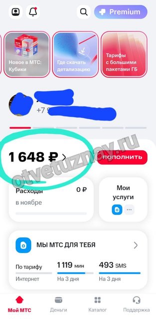 Входим в мобильное приложение МТС.