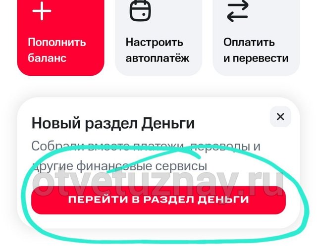 После этого вас перебрасывает в раздел, где будет написано «Перейти в раздел деньги».