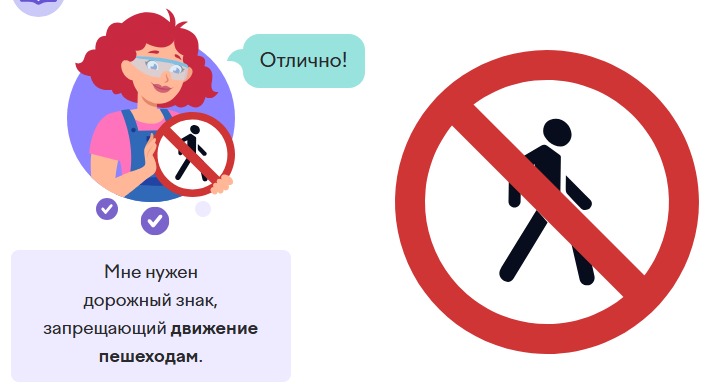 1. Прочитай запросы людей и собери дорожные знаки правильно:
