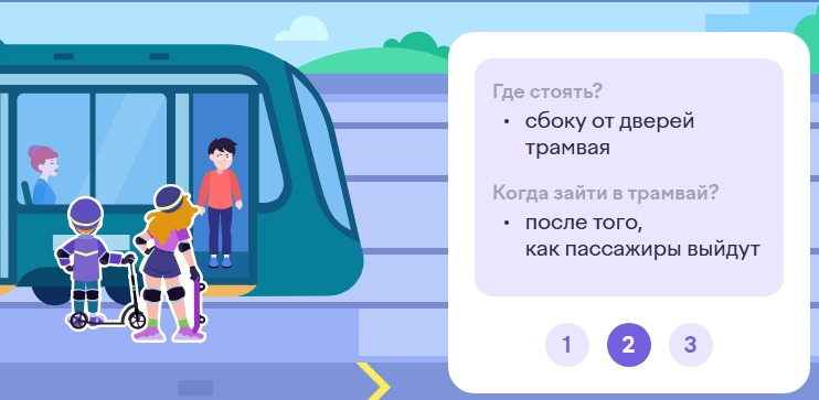Выбери, где Олесе и Пете стоять и когда зайти в трамвай, чтобы это было безопасно для всех.