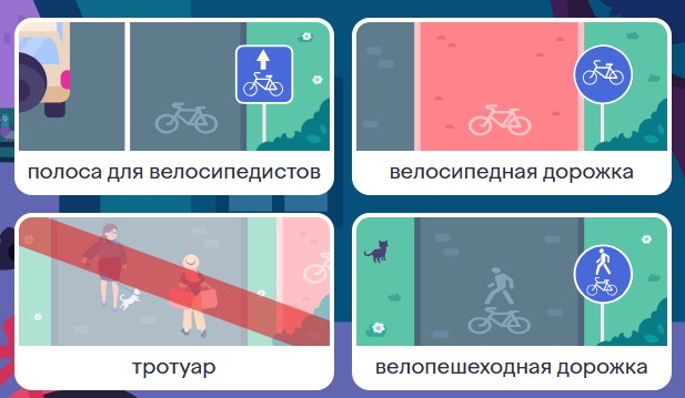 Выбери, где 14-летней Олесе нельзя проехать на велосипеде.