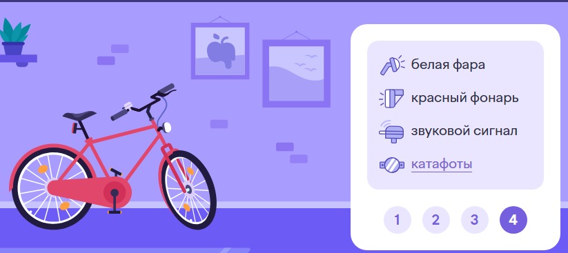 4. Выбери набор деталей для велосипеда Олеси, чтобы её поездка была более безопасной.