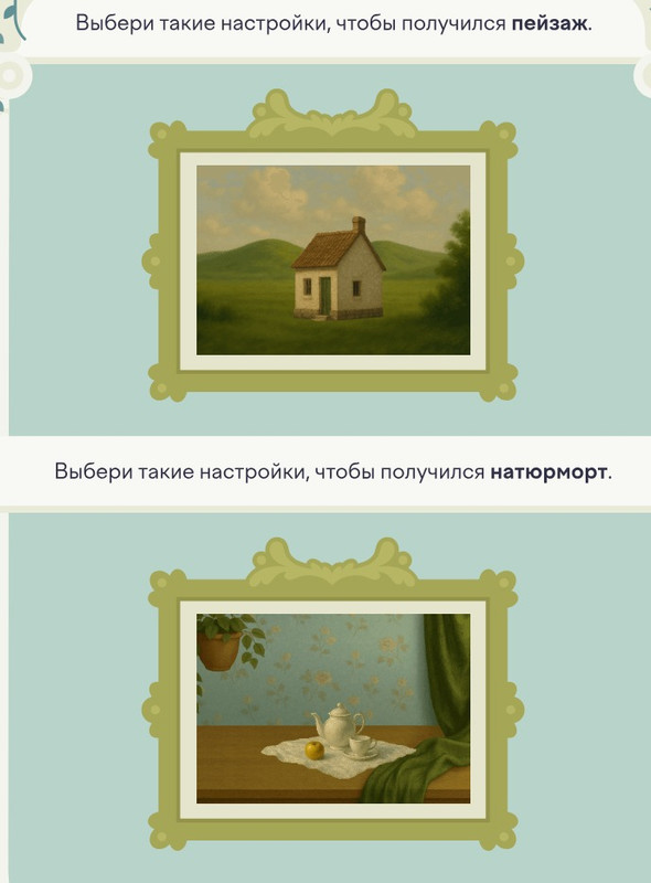 1. Конструктор картин. Здесь не трудно понять, какие картины — натюрморт, а какие пейзаж.